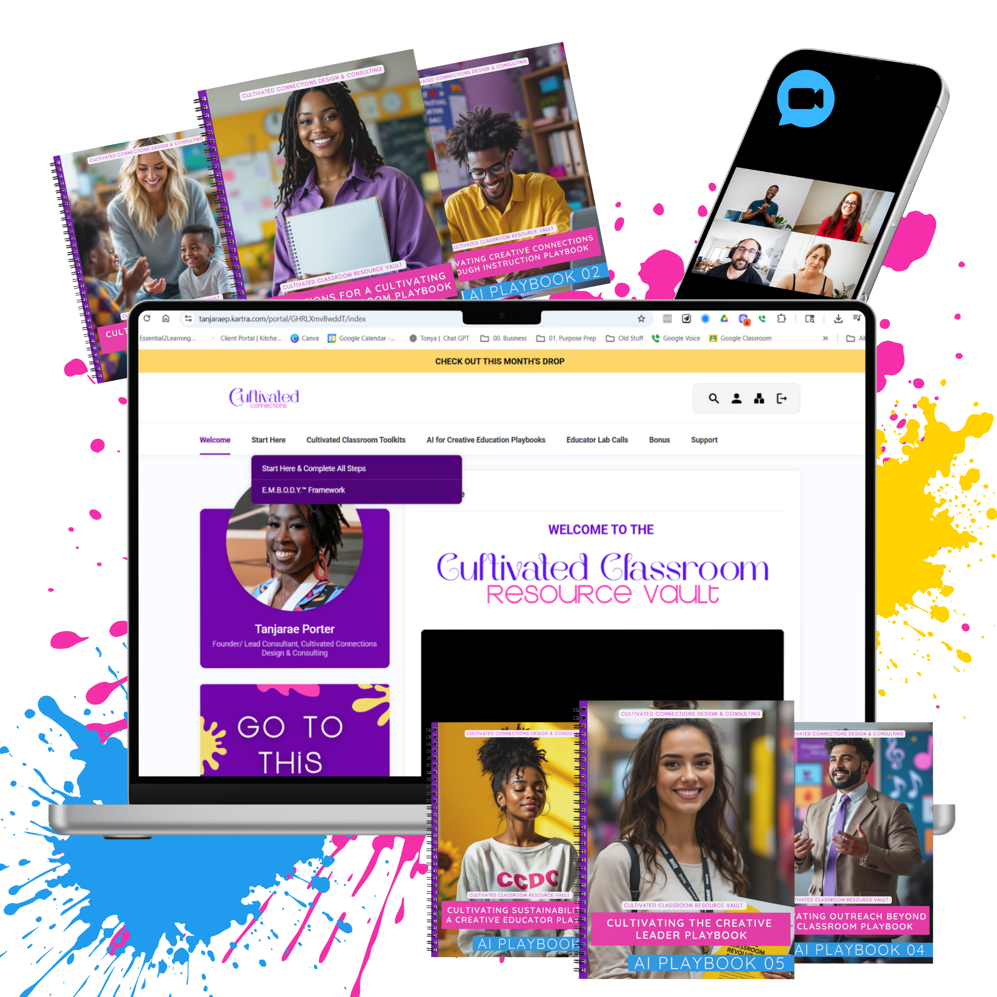 The Cultivated Classroom Resource Vault is a digital membership that gives educators access to ready-to-use arts-integrated lessons, training videos, AI-powered tools, and equity-centered resources — all designed to make teaching creative, rigorous, and sustainable.
